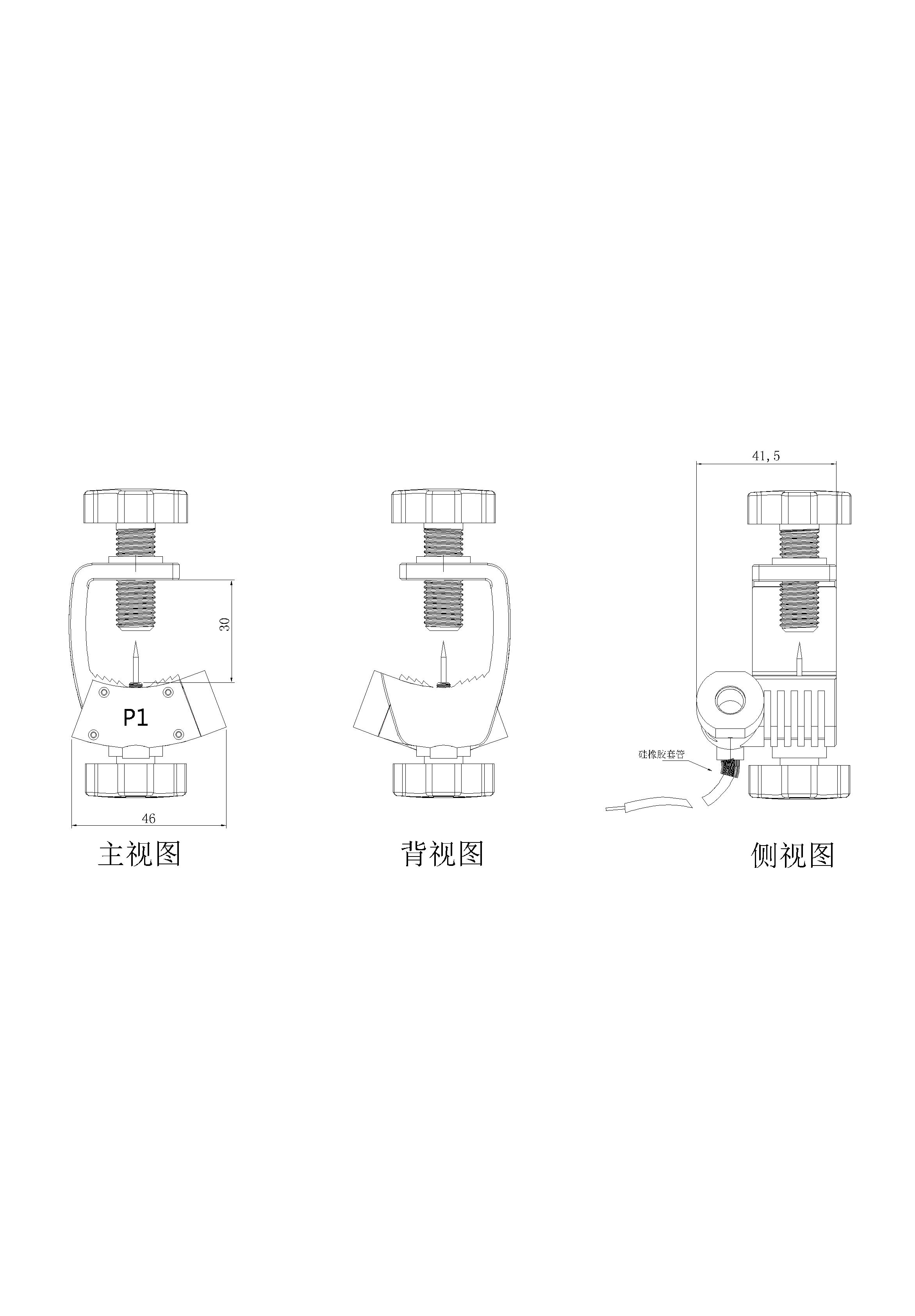 TRKLC-30J开合式穿刺取电夹,主要用于低压0.66/0.72kV输电电缆,方便在带电情况下安装及拆除;带电穿刺电缆,通过引出线将相线电压信号引至监测电表。可直接固定在直径为5mm~30mm的线缆上